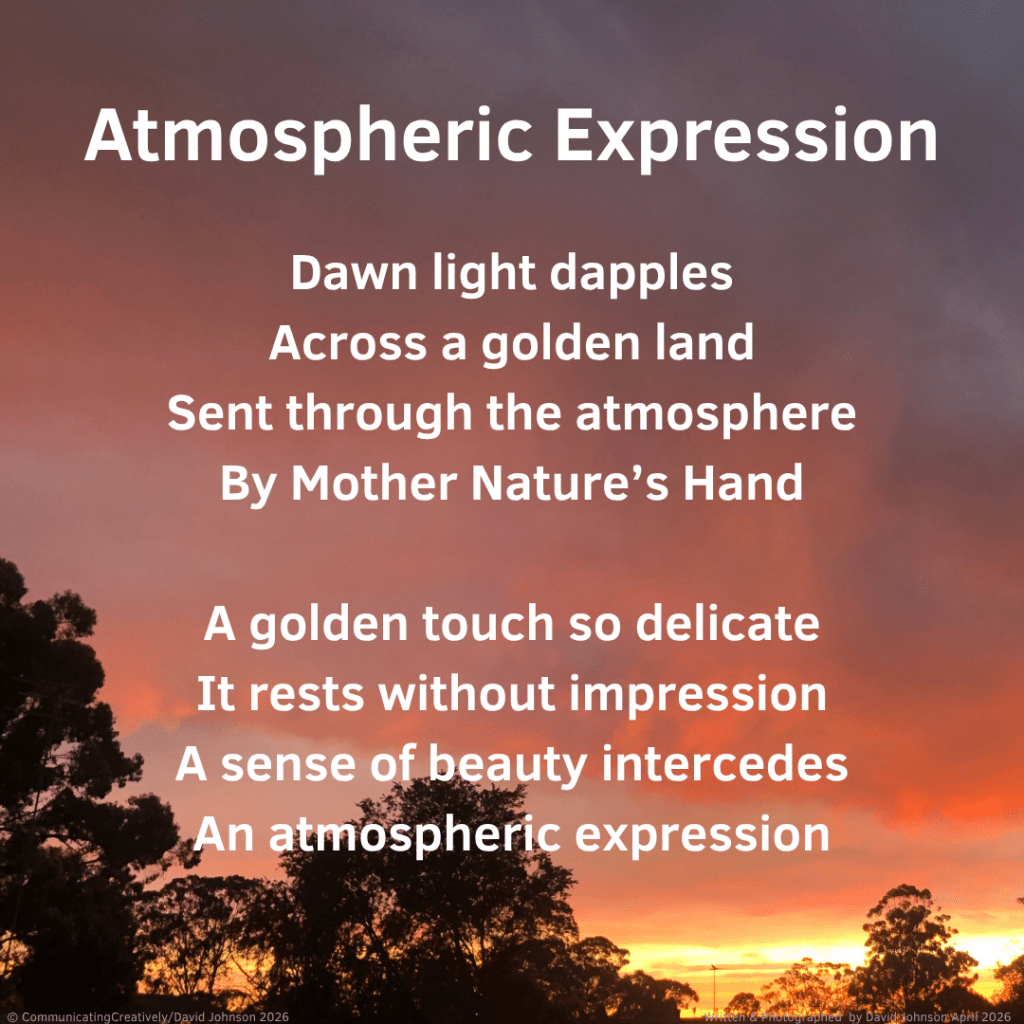 It’s been a while since I added to this segment. The images below were taken in March and April this year. We’ve certainly had some beautiful skies of that time. I always enjoy looking at, and taking photos of clouds etc. They also make excellent backgrounds for my poems. 🙂