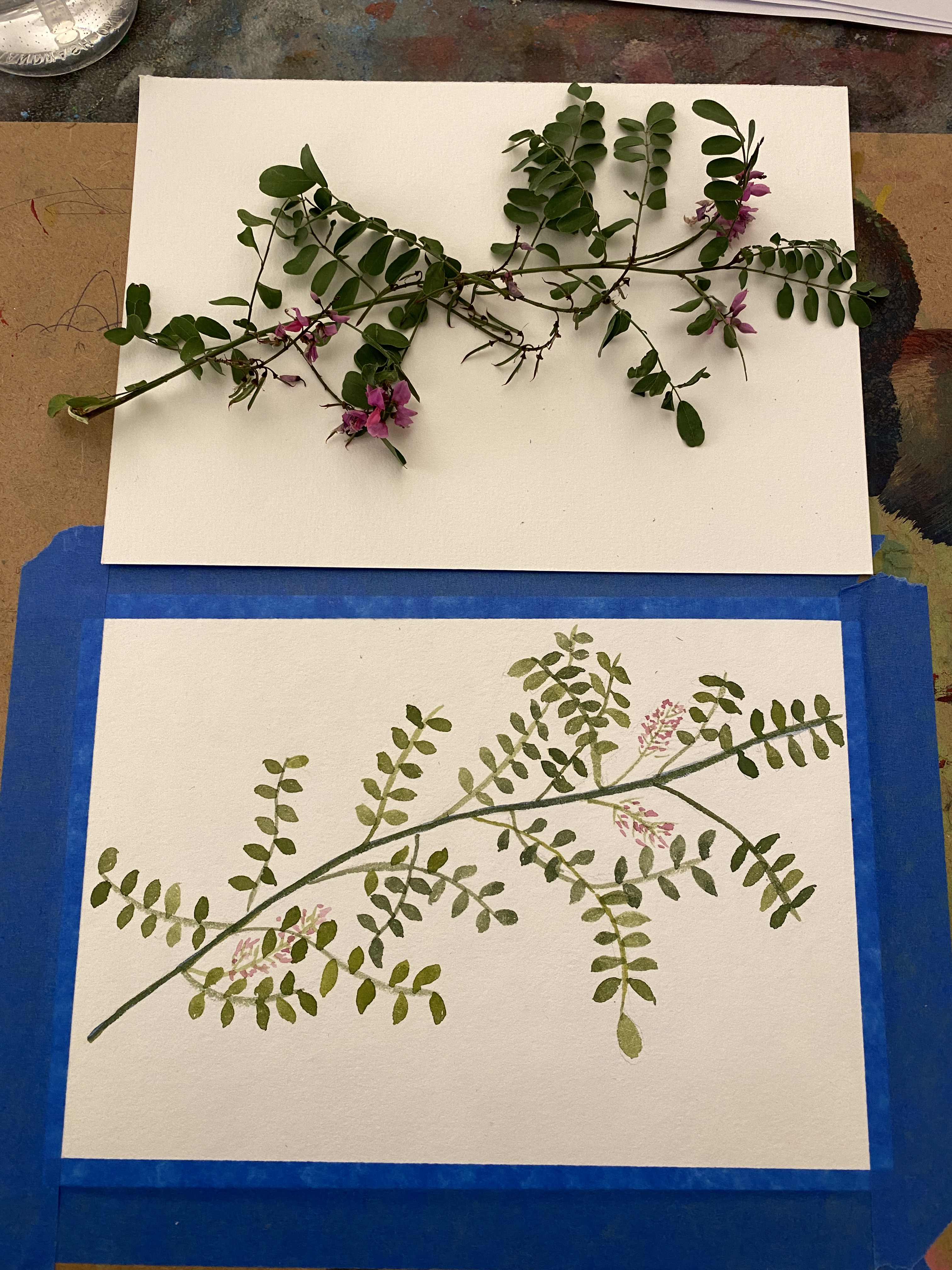 We were asked to choose from a selection of flora or pick out an animal from an image, and draw from that. I chose flora, namely, “Australian Indigo”, as seen below.
